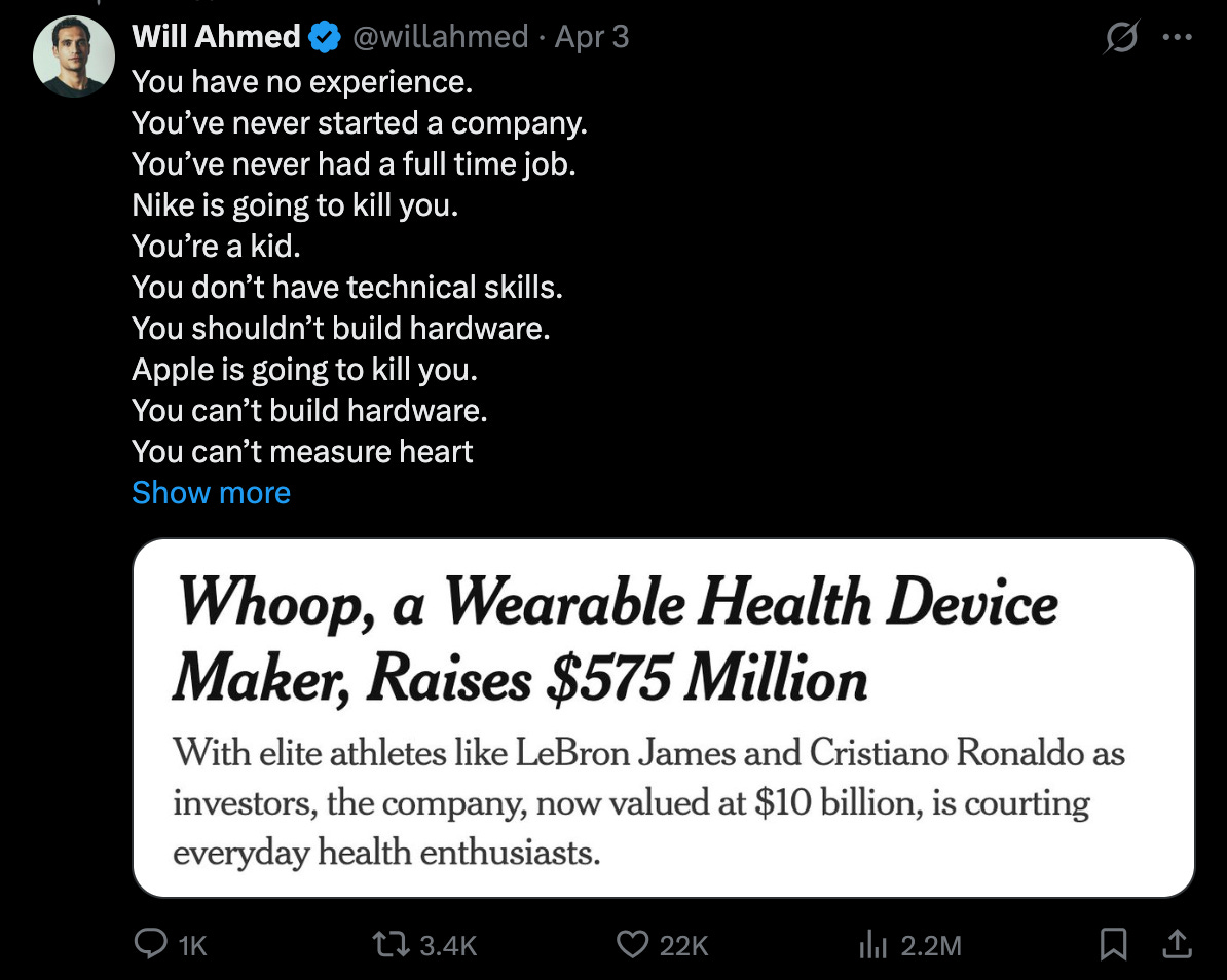 That’s great for Whoop, and well-deserved. But it’s easy to praise the king after the coronation. What about the tens of thousands of founders fighting to take the first step towards the promised land?