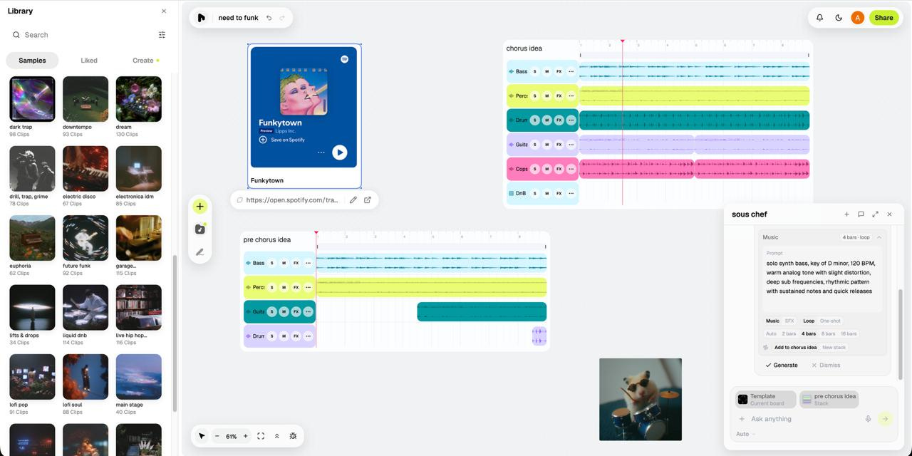 Their philosophy towards AI is equally deliberate. Both founders are heavy users of Claude and Midjourney, so they know firsthand that AI is incredible when it amplifies your own thinking. So sous chef’s job isn’t to make your music. It’s to help you make your music. You’re the chef. It chops the onions.